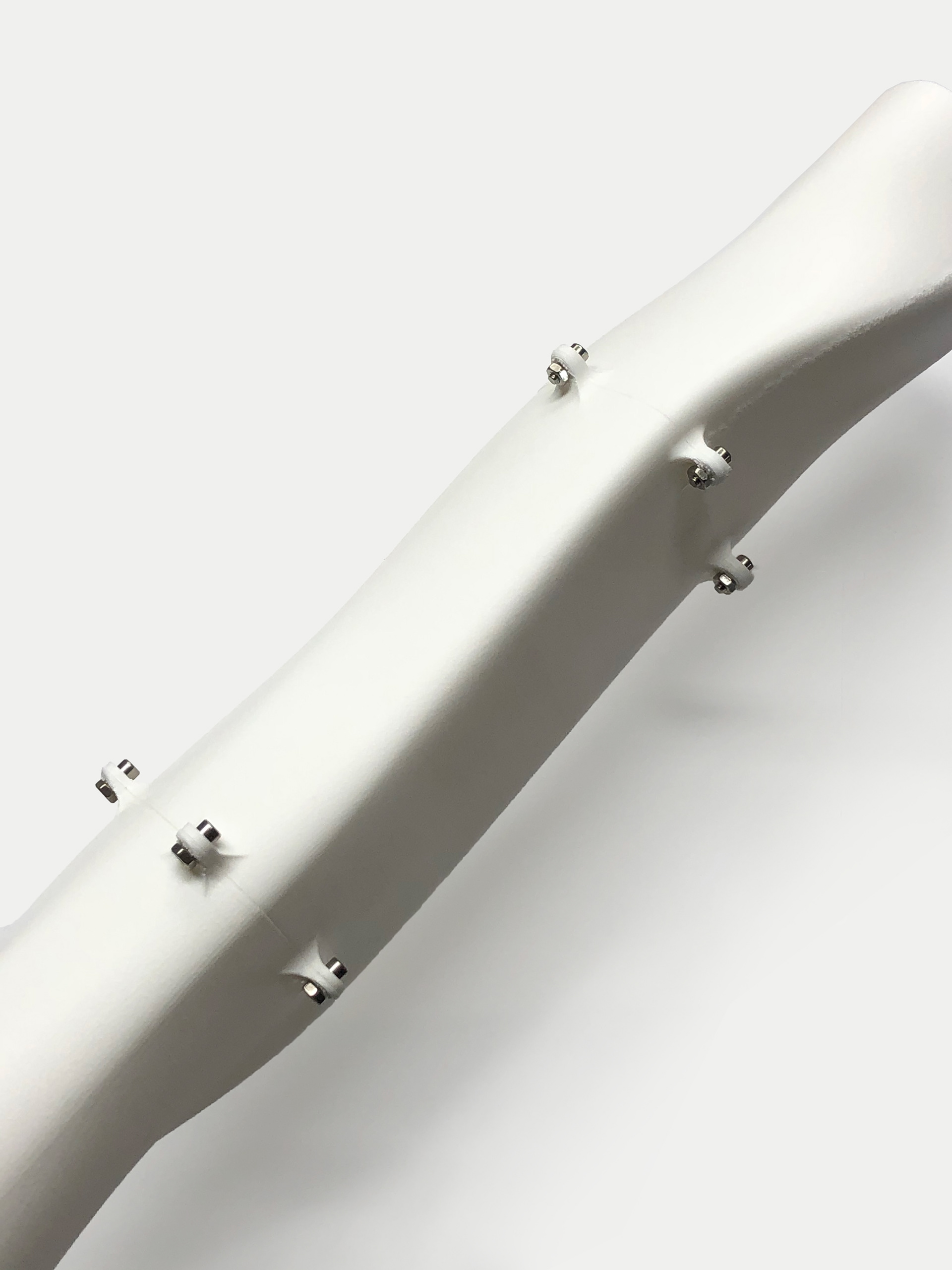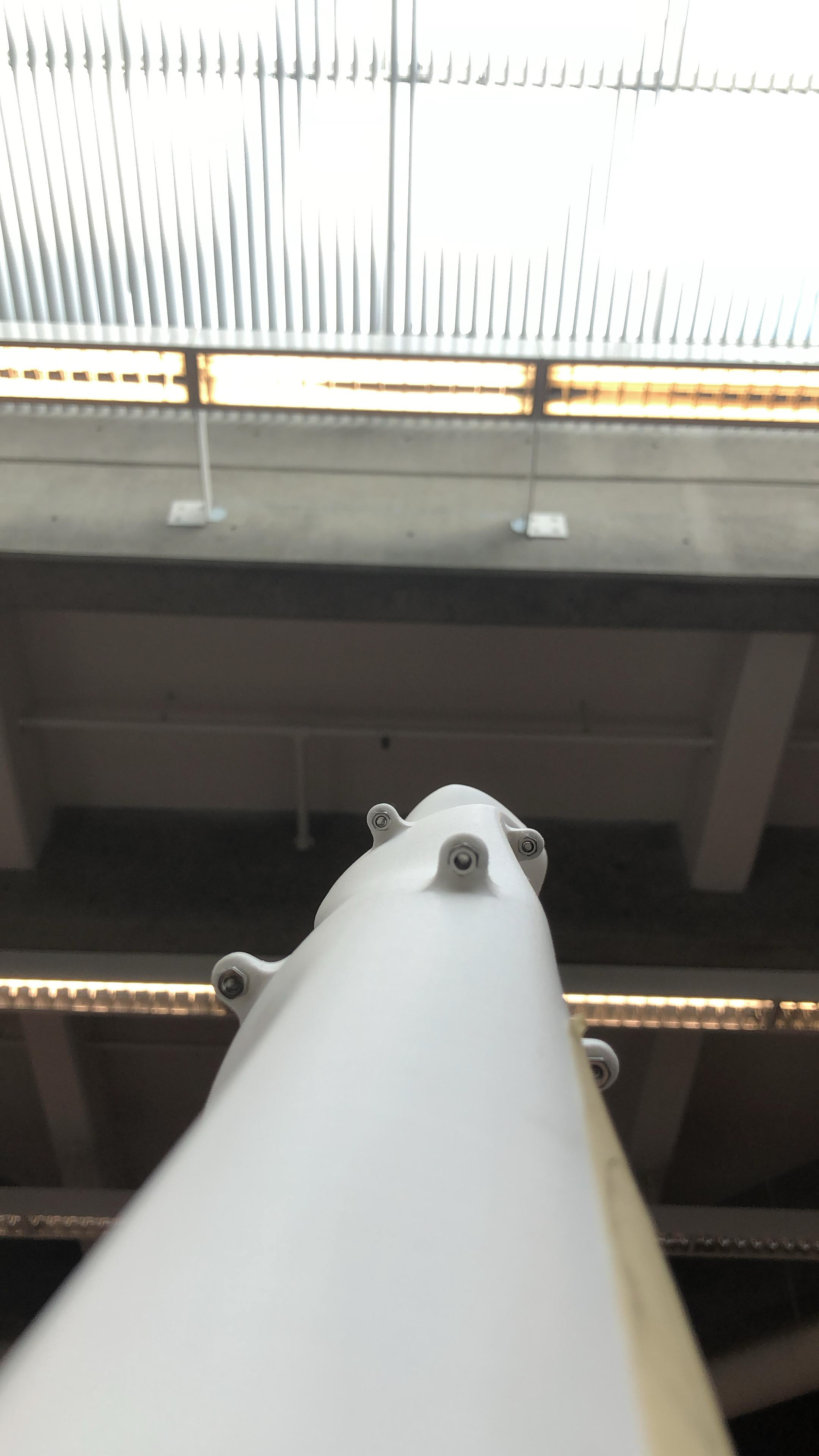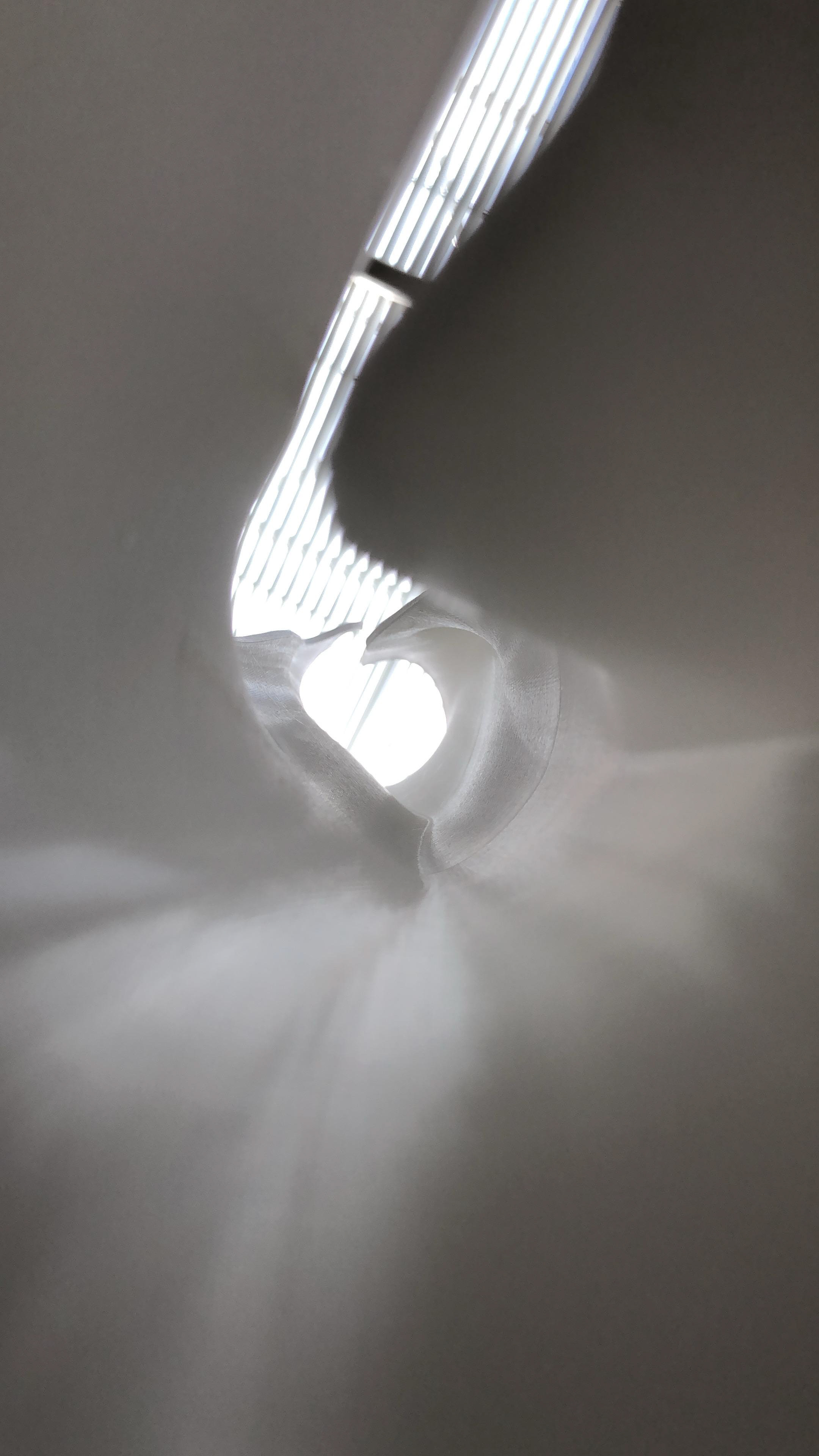 With this next project our goal was to ideate on a tower design with the intention of printing at full scale and presenting at our booth at ICFF. The constraints for this project were: 18 feet tall, 3x3 foot footprint, and to design with the knowledge that the final tower will have to be transported in pieces and assembled on site. Therefore some type of connection would have to be designed into the structure. I chose to create a very abstracted representation of a tower, composed of curves and no straight lines. This would allow for an interior space that would fit one person, and the vertical space would create a visual that resembles the narrow ravines of Arizona. In the last photo, I experimented with varying the texture between the outside and inside space, with a smooth inner section and rough outer wall. This would create a juxtaposition between the spaces, as well as helping to conceal the mechanical connection of the bolts in the original model photos.